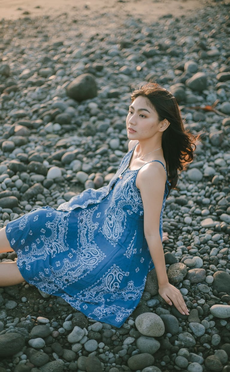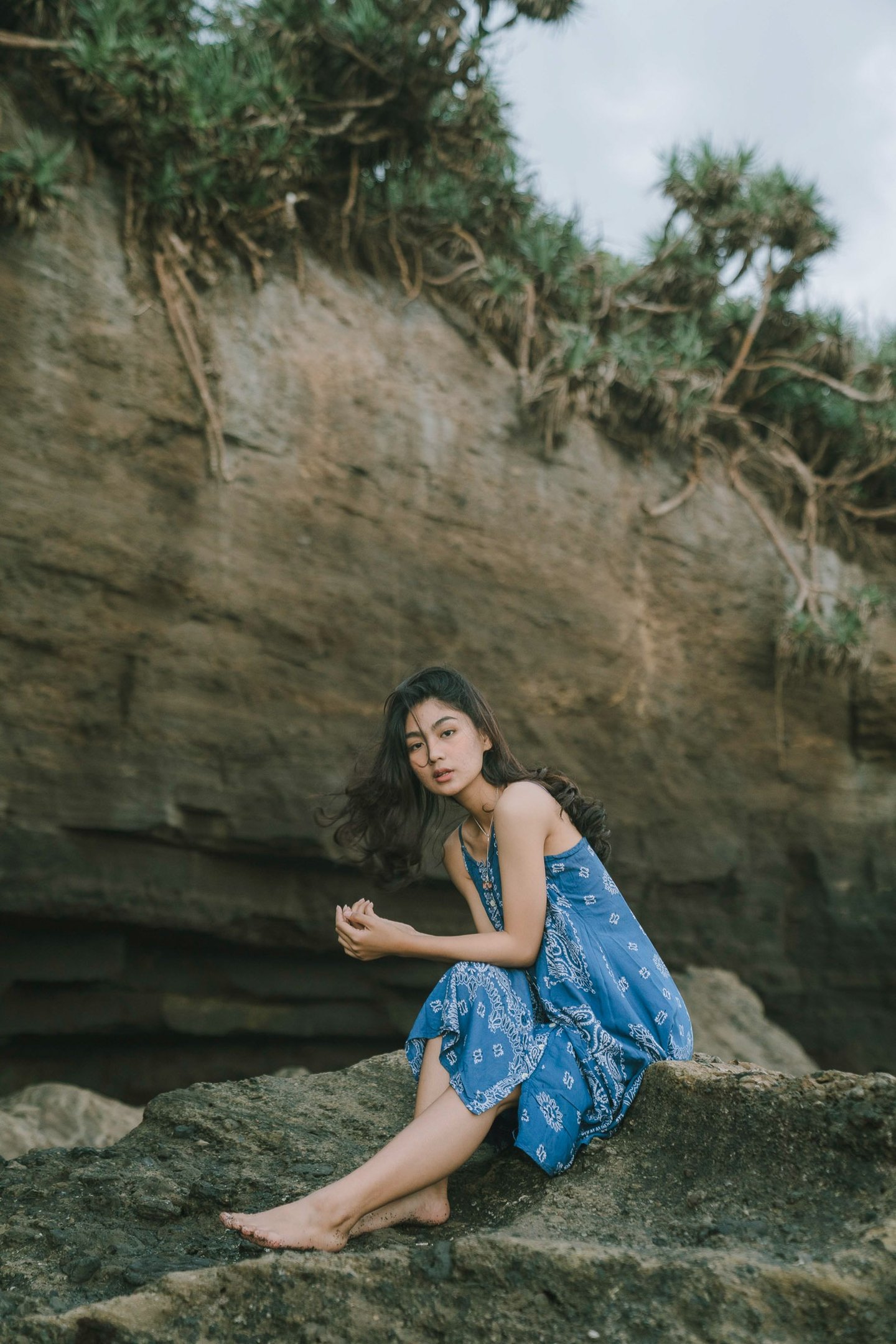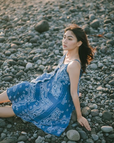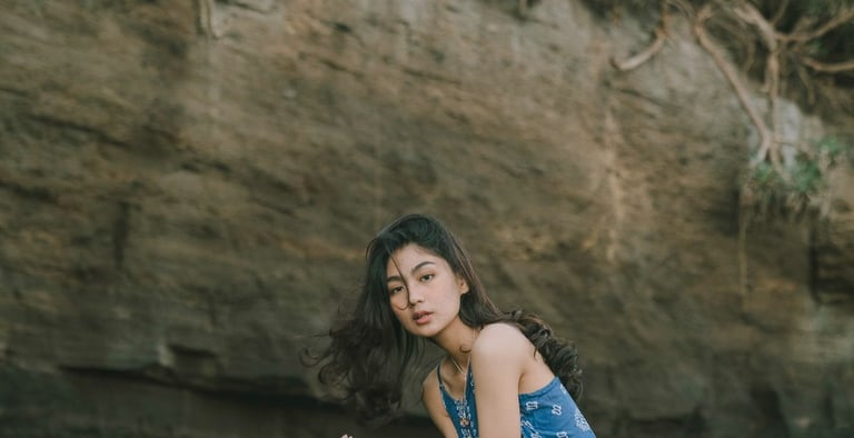 Adinda’s portrait session took place along the raw coastline of Nyanyi Beach — where dark sand, layered cliffs, and open horizon create a space of quiet introspection.