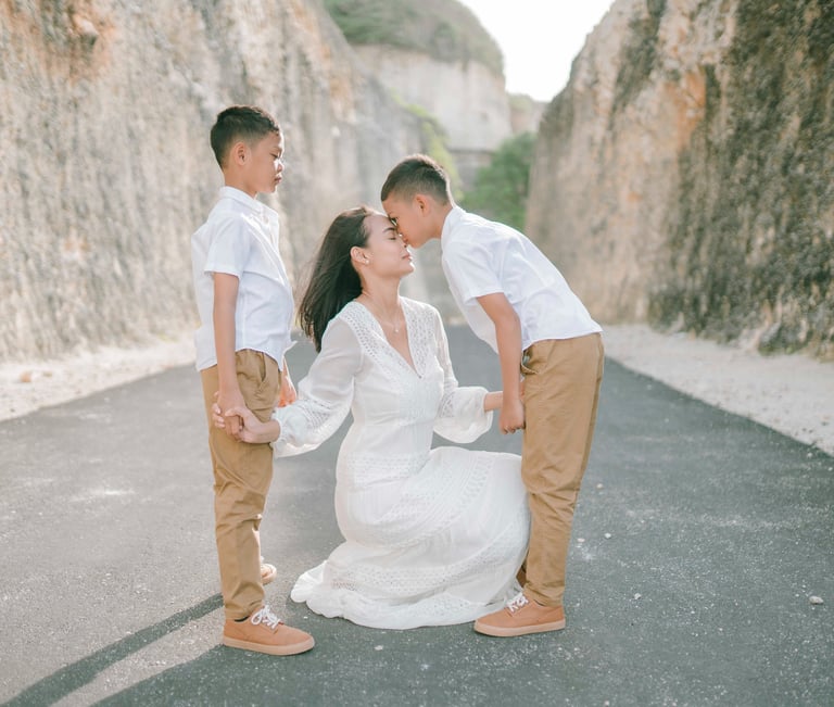 This session with Ayunda and her family unfolded naturally at Melasti Beach. There were no forced poses or exaggerated gestures, only honest interaction and space to breathe. The landscape felt vast and open, yet their connection remained the center of every frame — subtle touches, shared glances, unspoken understanding.