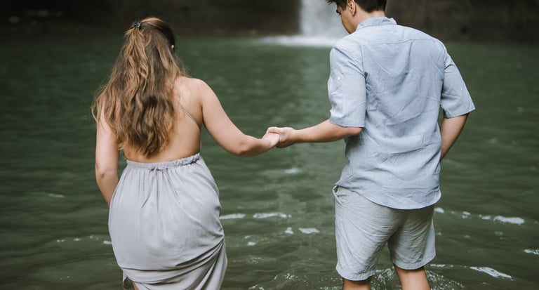 They moved naturally — walking through the water, laughing without awareness of the camera, holding each other without direction. The waterfall did not dominate the scene; it framed their presence. Every gesture felt unperformed, every expression unplanned.
