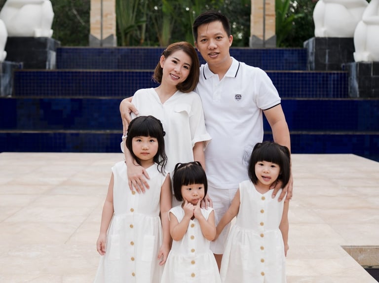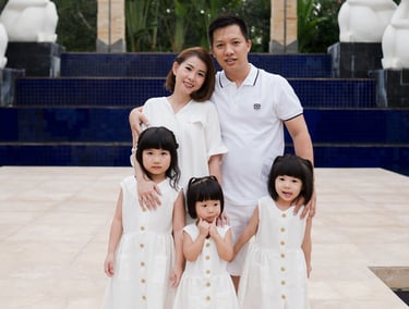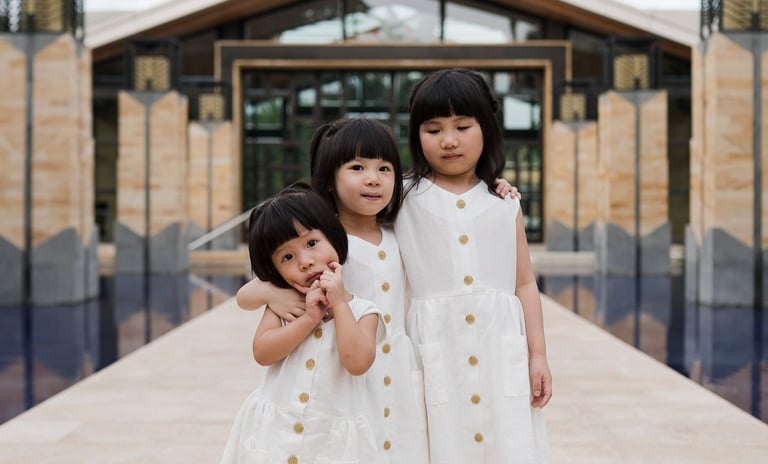 Set against the elegant architecture and coastal gardens of The Mulia Nusa Dua, this family session unfolded with quiet ease. Children moved between open pathways and soft lawns while their parents followed their rhythm — gentle moments forming naturally under the warm Bali light.