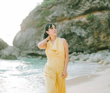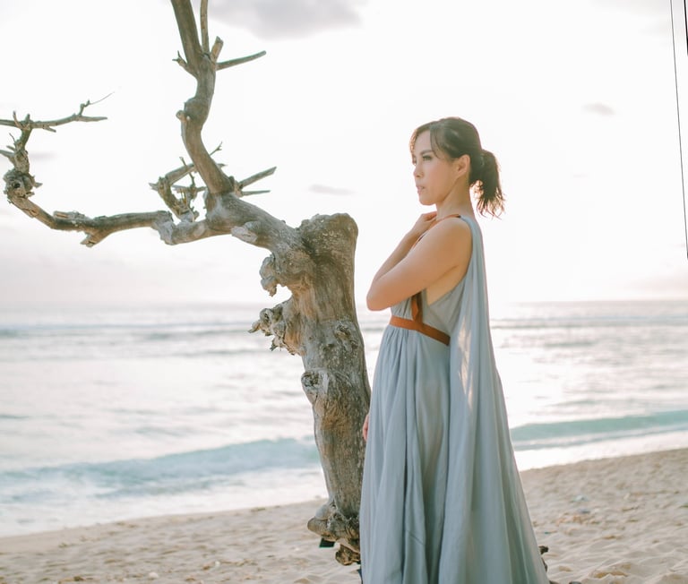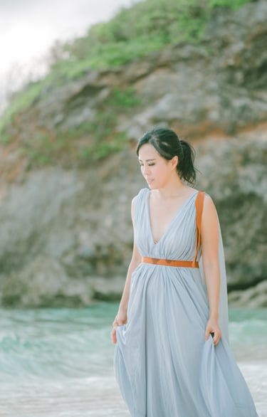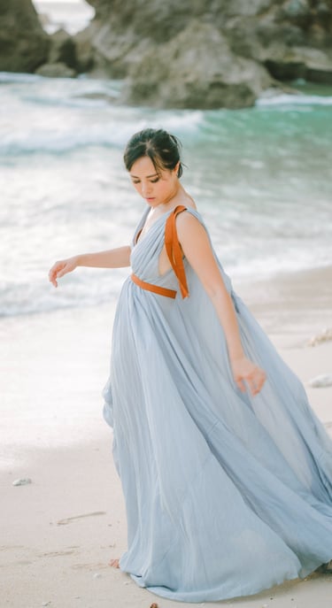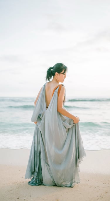 Paula’s portrait session unfolded along the quiet stretch of Nyang Nyang Beach, where soft tides and open sky create space for fluid movement.